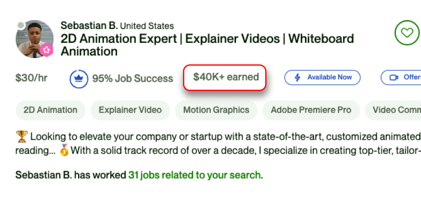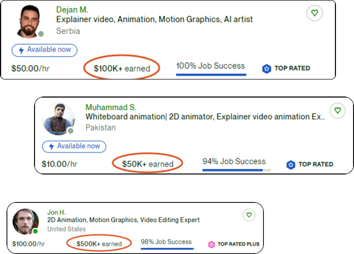Every day people are making life-changing incomes by providing clients with animated videos. You can do the same. It doesn’t matter where you are in the world. Since animation is a hot skill to have, ToonReel can help you get paid very well providing these types of videos just like these people: