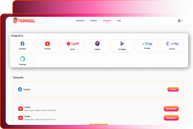 Get even more mileage by integrating ToonReel with our other apps like ToonReel, VidReel & more for a streamlined automated video creation engine.
