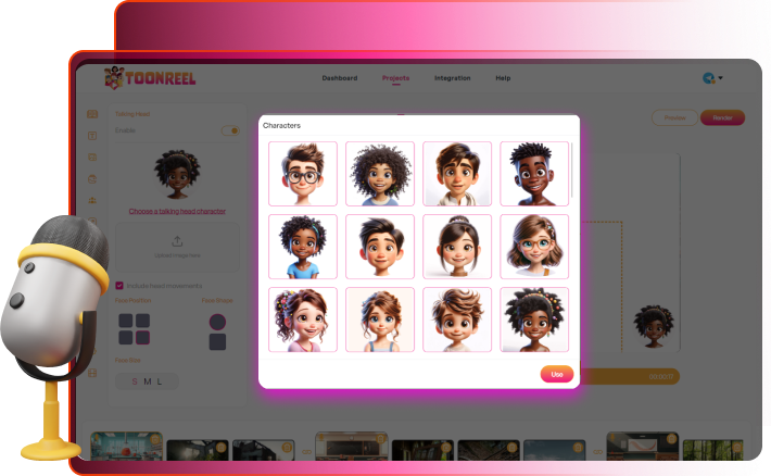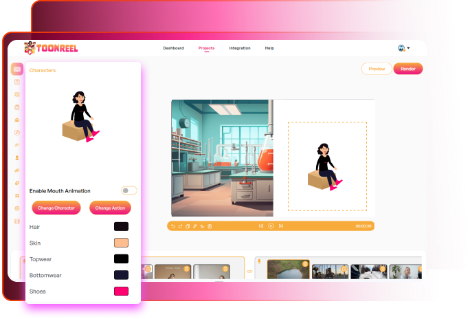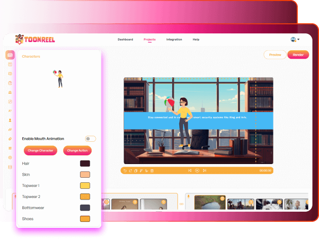ToonReel fixes this problem for you by letting you create 100’s of animated character talking videos in just minutes with a click of your mouse.